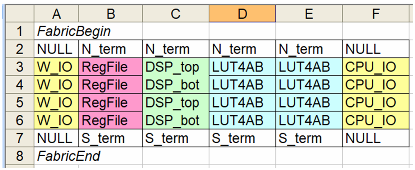 (the comment symbol in all FABulous descriptions).Parameters that relate to the fabric specification are encapsulated between the key words