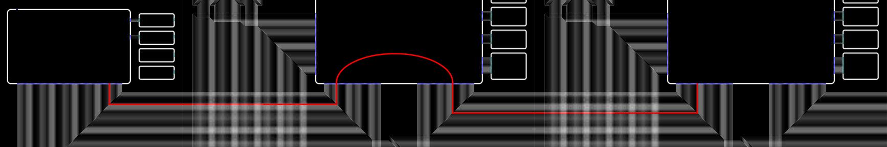 If a basic tile has a border to the outside world (i.e. the surrounding fabric), the interface to that border is exported to the supertile interface (i.e. the Entity in VHDL). Those borders are marked blue in the figure above. Internal edges are connected inside the supertile wrapper according to the entire tile specification.